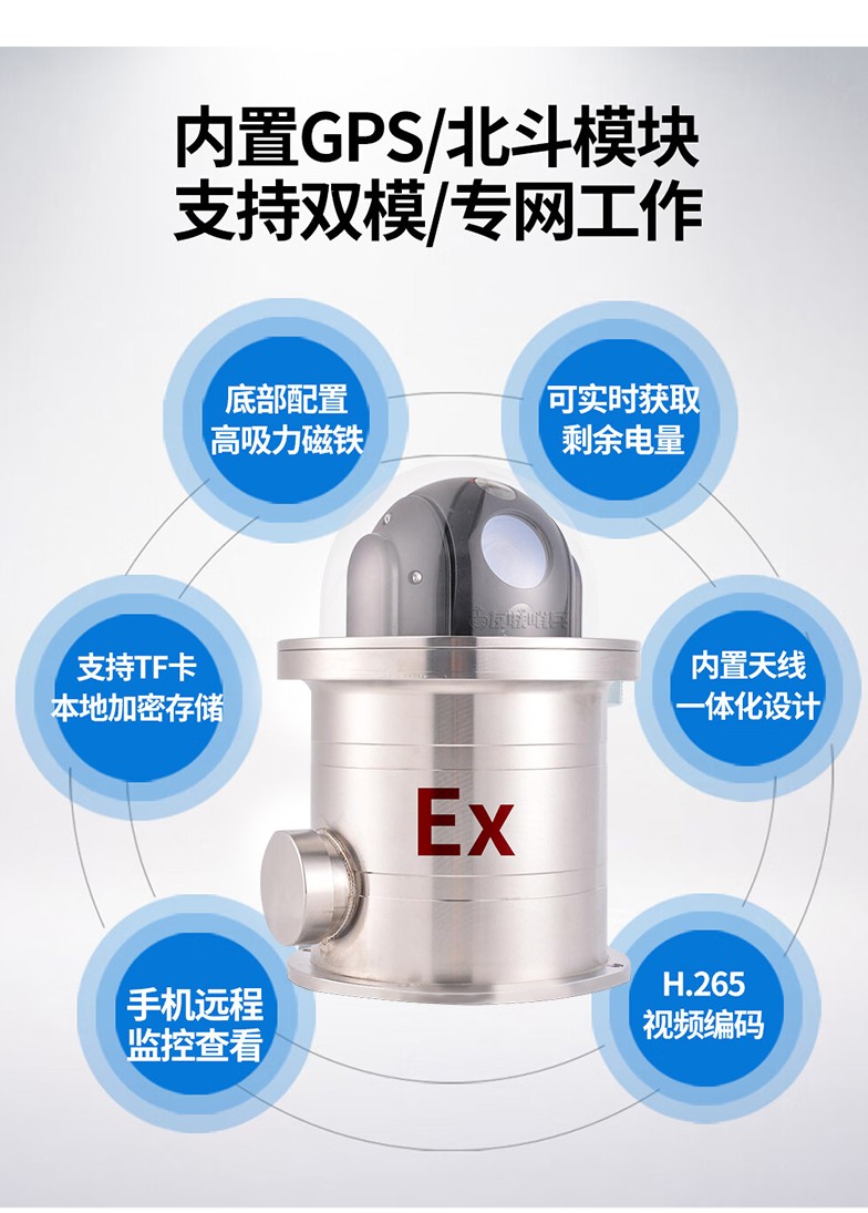友聯哨兵 ULH-Ss12Ex 防爆布控球是一款具備防爆功能的一體化無線視頻應急指揮系統,專為特定行業(如石油、煉化、化工、燃氣等危險化學和易燃易爆行業)設計。產品內置高清攝像機及高性能鋰電池組,通過無線網絡方式回傳至控制終端,具備防水防震防爆等特性,攜帶便捷,可快速安裝和收納,完全滿足石油、化工等作業區的移動巡檢、無人值守、臨時監控、應急指揮的應用需求。