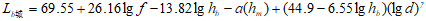 Okumura-Hata模型是Hata在Okumura大量測試數據的基礎上用公式擬合得到的。由于使用Okumura模型,需要查找其給出的各種曲線,不利于計算機預測。Hata根據Okumura的基本中值場強預測曲線,通過曲線擬合,提出了傳播損耗的經驗公式,即Okumura-Hata模型。